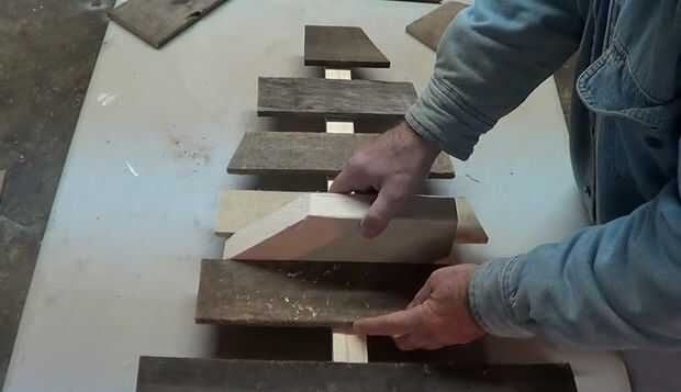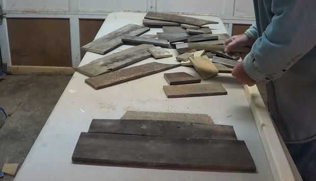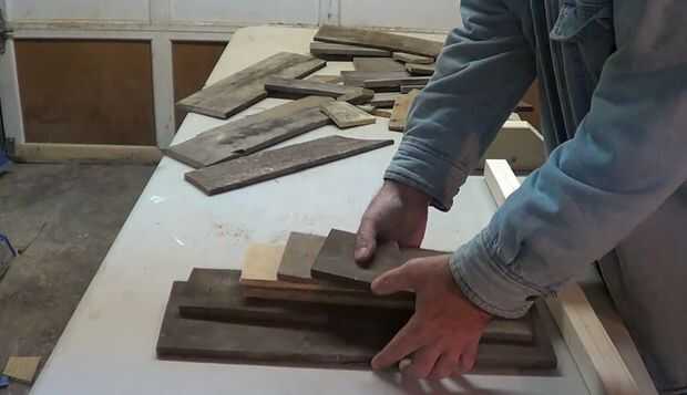 Comience primero con el pedazo más largo de los listones de la plataforma. Entonces encontrar uno de 2" más corto y apenas suba.