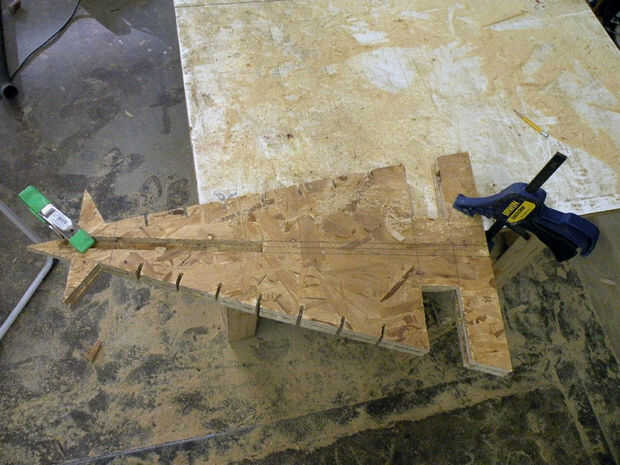 Perfore un agujero en el centro de las muescas eventual que se sujetan las mitades, luego suben la sierra para cubrir el agujero. Tenga especial cuidado con estos cortes: deben ser rectos y corte ligeramente hacia el interior de las líneas para un ajuste apretado. También asegúrese de que reflejan mutuamente, uno el venir de la parte superior al centro y la venida de la parte inferior al centro.