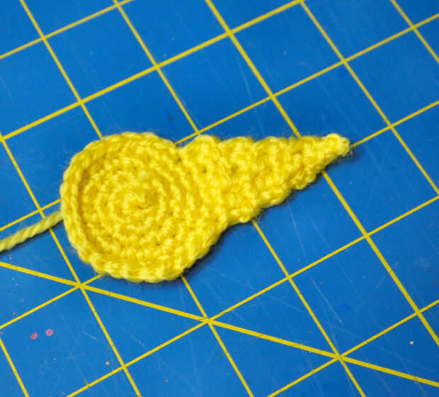 Fila 3: sc, sc2tog, sc, sc ch 1, gire (4sts)