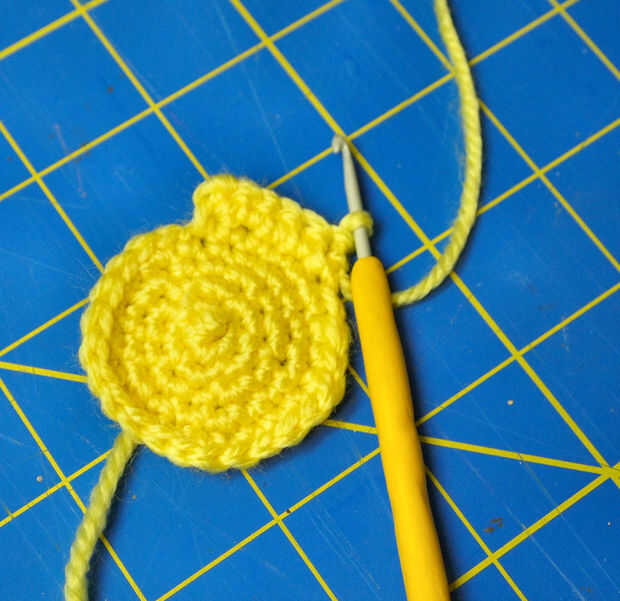 Rnd5: * 2sc en sc, sc, sc, sc (repetir desde *) (25sts)