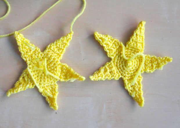 Hacer 4 más puntos estrella a partir de la próxima sc en el centro de la estrella.