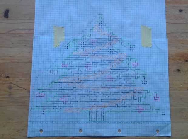 Primero dibujar una imagen, utilizando sólo los colores que usted puede encontrar LEDs en. Palabra de precaución, tenga cuidado con el rojo! Pedí 100 rojo parpadea, pero descubrí que cuando se ponen en serie se apagarán toda la serie cuando apagado. Puesto 9 de una serie y casi nunca se enciende. Azul y amarillo no tienen ese problema, es por eso que no tengo adornos rojos en mi árbol.