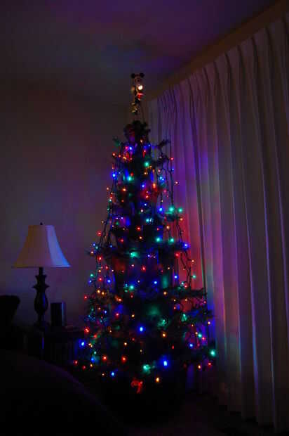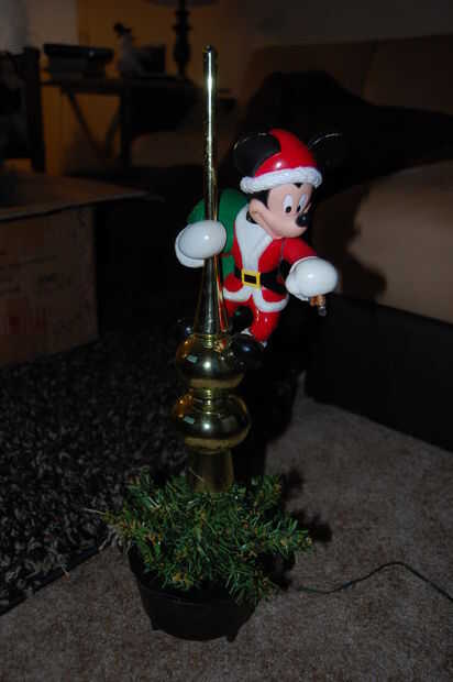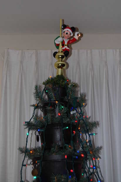 Para el acolchado para sentarse en la parte superior del árbol compré otro árbol "mini" para colocar dentro del horno holandés de 5" y atado con cinta de gorila negro un poco para mantener nuestros primeros caiga. A continuación, liberar las ramas juntas y resbaló el cumpleaños de Mickey mouse en el árbol de la mini. Por cierto encontré la luz arriba y Mickey Mouse de cumpleaños en, adivinaron buena voluntad por $2.99 y trabaja! Por último para iis para colocar el horno holandés 5" con el sombrero en la cima de la pila antes de añadir adornos y luces.