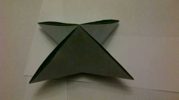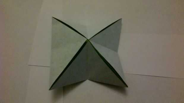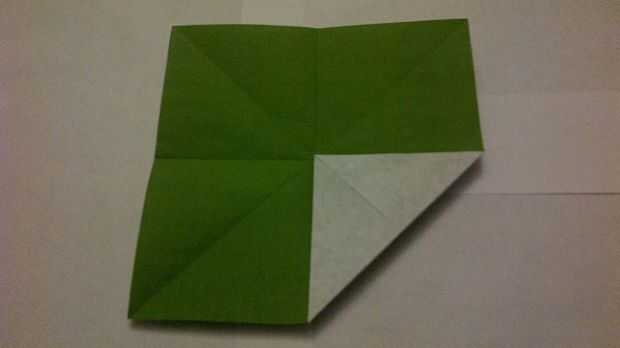 Luego tomar las esquinas y doblar en el centro que se reúnen todos los pliegues y repiten para las esquinas restantes.