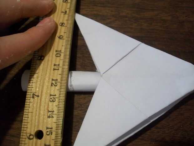 Utilizar la regla para hacer una marca en el palo donde los puntos de la parte inferior del triángulo.
