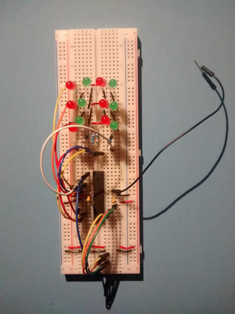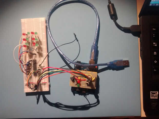 Después trabajó el bootloading, construí un pequeño prototipo en protoboard con solo 12 LEDs, sólo para ver cómo podría funcionar la multiplexación. En primer lugar he intentado mediante la función digitalWrite() , pero resultó ser demasiado lento, así que tuve que cambiarlo y establecer los registros de pin directamente. Esto es un poco más engorroso, pero afortunadamente es muy bien documentada en la Página Web de Arduino.