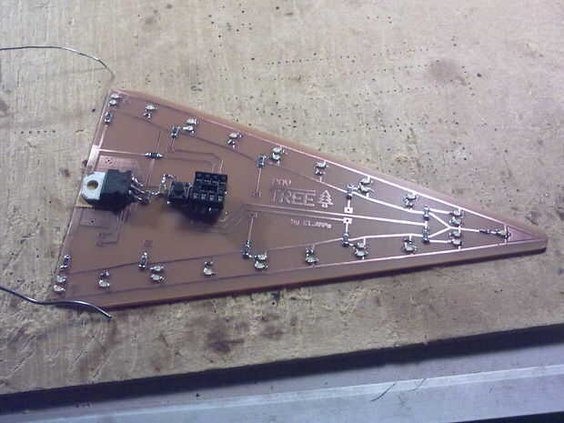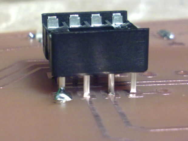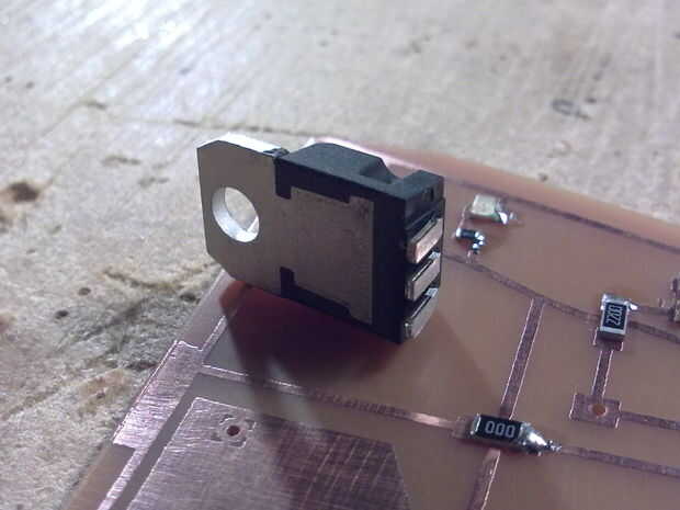Otra nota es montaje componentes agujero como SMD. Recortar sólo un poco del zócalo del ic pernos y soldadura del pin de una esquina lado primero, alinear el resto y soldadura. Para los reguladores TO220 a doblan las patas hacia abajo, cortar del tamaño y de la soldadura, aislar la almohadilla térmica de la junta con cinta de doble cara.