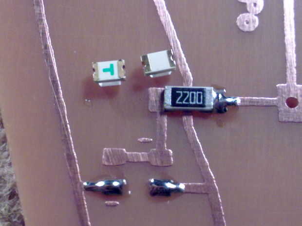 Una nota especial está con polaridad led de SMD, generalmente tienen una marca de "T" en la parte inferior o puntos en la parte superior. Los puntos o la parte inferior de la "T" indica el lado del cátodo "negativo" (ver las imágenes de referencia sobre el tema).