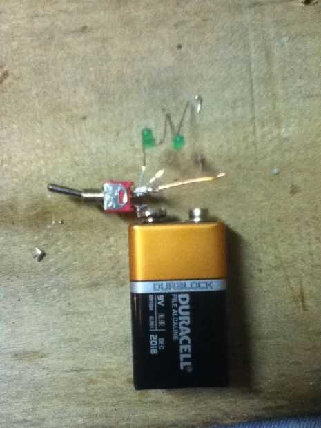 Uno por uno, la soldadura de los cables de tierra del LED al otro extremo del interruptor. Doble los cables positivo vuelta y dejarlos solos.