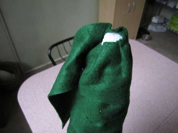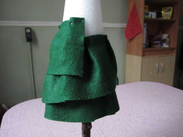 Al llegar al extremo de una tira de fieltro, prender la parte superior en su lugar como se muestra en la primera foto. Agregue la siguiente tira y perno encima de la primera tira como se muestra en la foto dos y seguir en la historia.