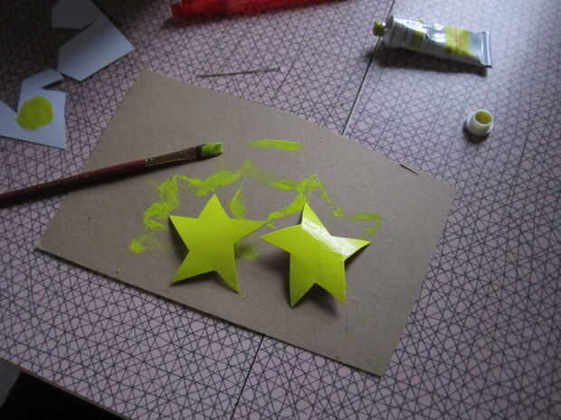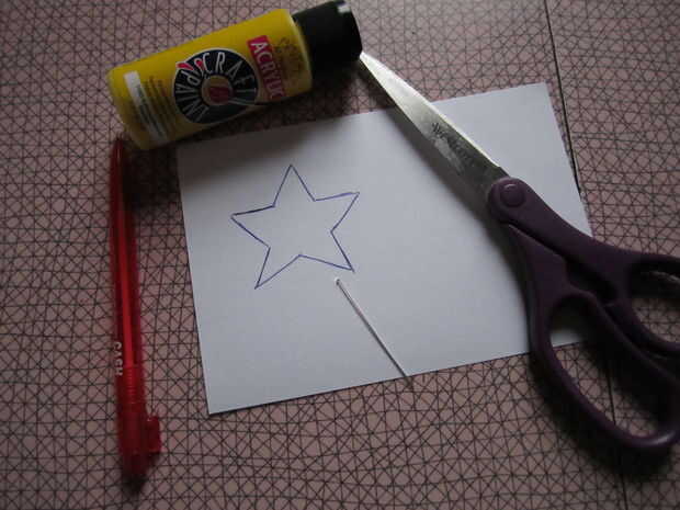 he decidido hacer una estrella dos estrellas en alguna cartulina de repuesto, pintura amarilla, y pegado con un perno de cabeza entre ellos. Una aguja larga funcionaría bien.