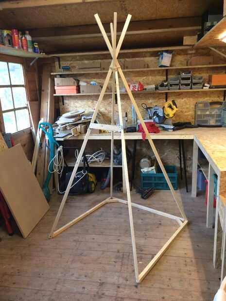 1) primero se hacen los dos pares de patas con las piezas de cuatro 210 cm.