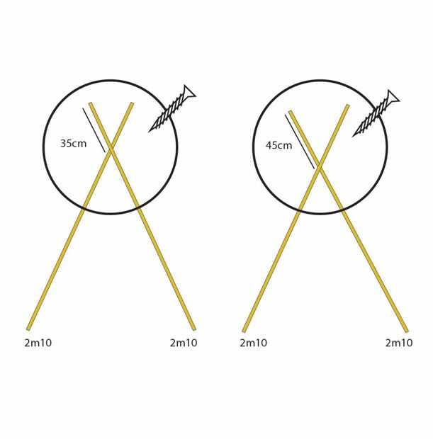 Conectar el primer par con un tornillo a 35cm desde la parte superior y el segundo par a 45cm de la parte superior.