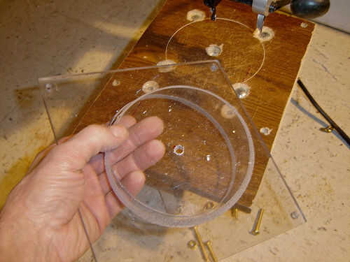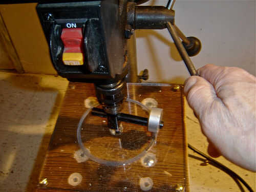 El centro del volante debe ser igual al tamaño del eje del motor soplador. En mi caso funcionó bien un agujero central de 1/4 de pulgada. Copia de seguridad del eje con una lavadora antes de montar el volante y asegúrese que la tuerca del eje no volver apagado utilizando Loctite.