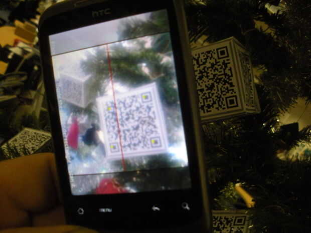 Utilizar tu teléfono Android u otro teléfono inteligente que tiene una cámara para analizar las implicaciones en el árbol de Navidad. Observe el mensaje devuelto. Boqueen en la cojera de la broma.