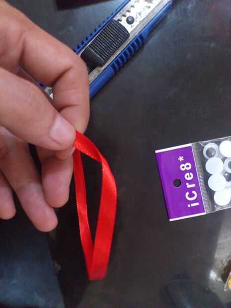 Poner un agujero en el centro de su patrón hecho e introduzca suficiente cinta para colgar.
