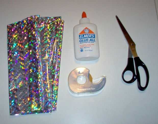 2. papel mylar, preferentemente del tipo holográfico "arco iris-y" de plata.