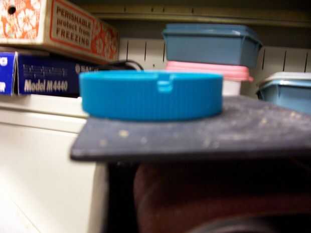 Ahora, usando una dremel y la herramienta de corte, cubre corte la parte superior de uno del tarro de mantequilla de maní.