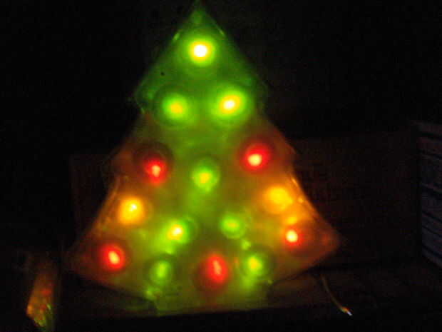 un ingenioso arbolito de Navidad LED, hecho de nada sino LEDs, resistencias y una fuente de alimentación encontrados.Paso 1: partes Ha hecho este árbol de 17 rojo, verde y LED amarillo - el más barato la tienda electrónica tenía en stock. (ninguna id