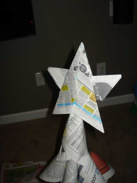 Para cubrir la parte superior, hice una media hoja del embudo y adjunta a la parte superior para cubrir la cinta. Entonces hace un origami empezar fuera un cuadrado del diario.
