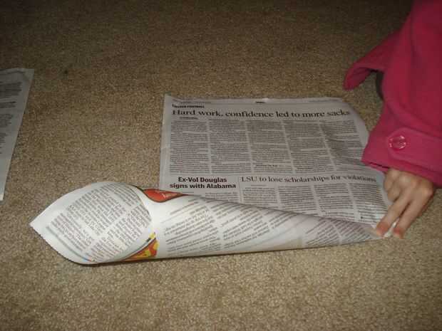 Usos del periódico, respetuoso del medio ambiente; Reutilizar el periódico. Escoba Eco Friendly y cubo de basura ecológico de los periódicos.