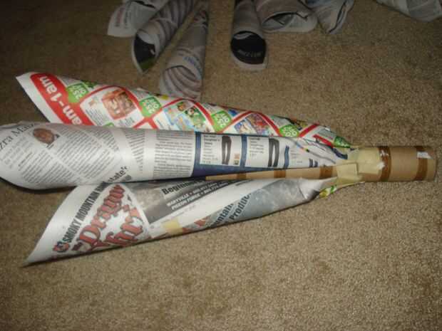 Usos del periódico, respetuoso del medio ambiente; Reutilizar el periódico. Escoba Eco Friendly y cubo de basura ecológico de los periódicos.