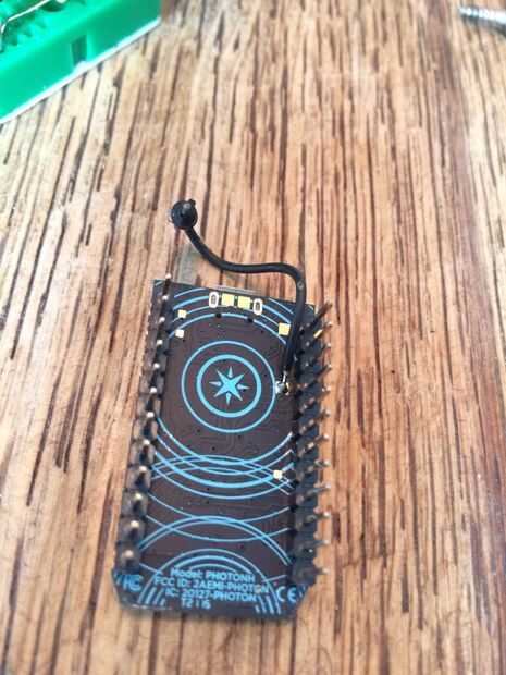 En este punto, antes de cerrar la caja conectar los fotones de energía mediante un cable USB. Compruebe si enciende. Compruebe si se restablece cuando se pulse el botón reset. Que, compruebe si el LED de los fotones cambia de color azul parpadea cuando se presiona el botón de configuración. Si todos los trabajos, retirar el cable USB y cierre con cuidado la caja, asegurándose de no ejercer ninguna fuerza en los cables.