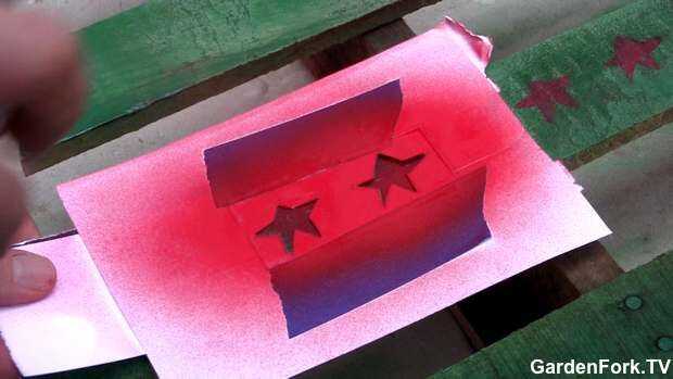 I cortar algunas estrellas dibujados a mano de cartulina y utiliza pintura en aerosol rojo para las estrellas de la plantilla.