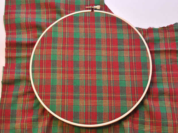 Su tela en el aro de bordado y recortar cualquier exceso.