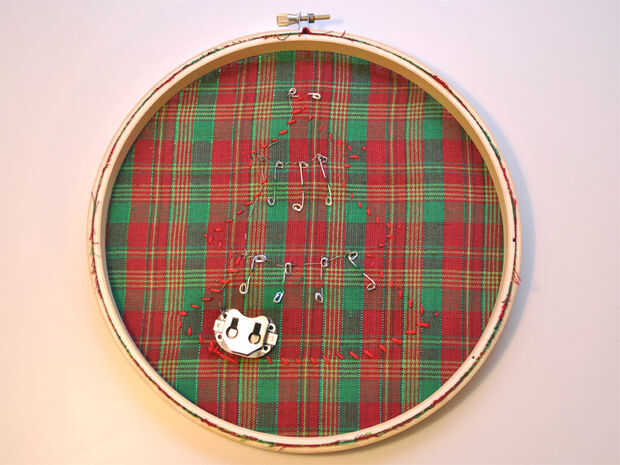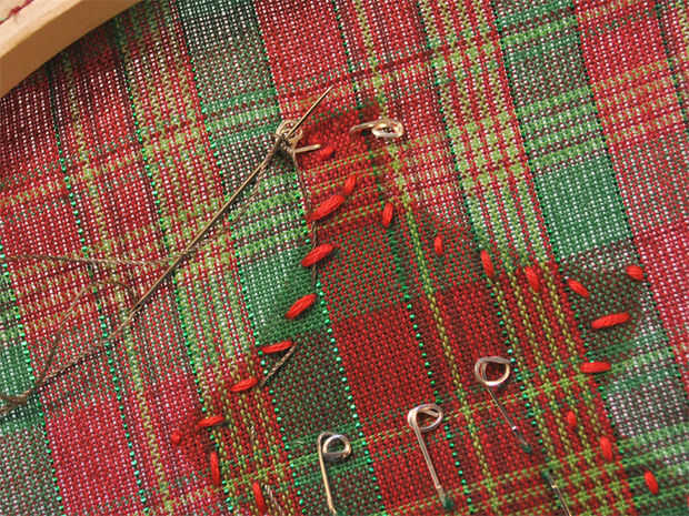 Con una puntada de funcionamiento, la estrella de viajes hasta la longitud del árbol y coser el lazo. Envuelva el hilo alrededor del lazo varias veces para una conexión segura y el nudo. Recorte el exceso de hilo.