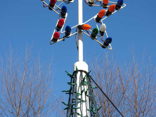 Tenía una línea de guía y juego de un viejo golpe Navidad decoración que solía hacer el árbol recto pero esperemos que usted no necesitará hacer eso.