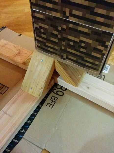 Cortar cuatro 6" secciones con ángulos de 45 grados en ambos lados. Apriete para el soporte y la base, otra vez a partir de dos que sujetan a la 4" lados de la base.
