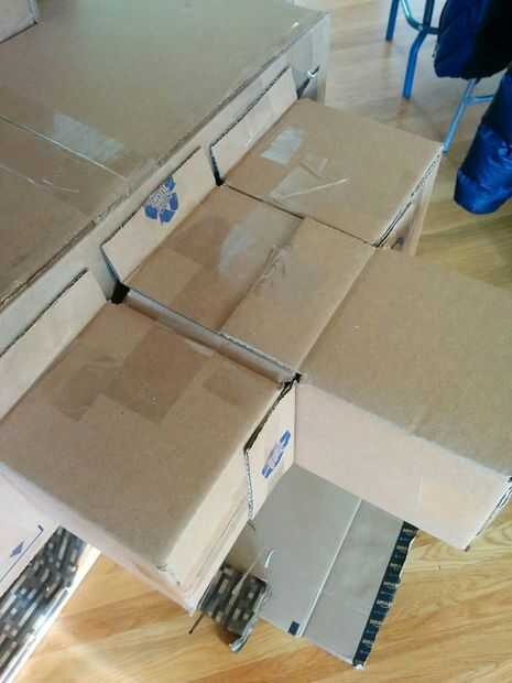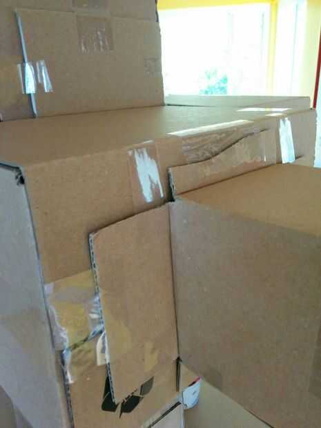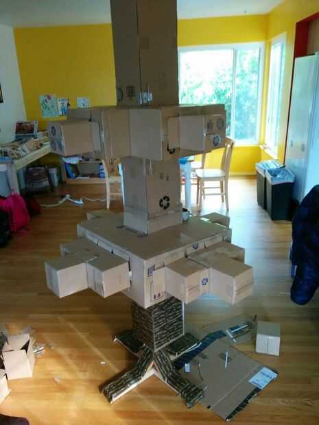 Historia: me mudé a mi casa pocos días antes de hace años de Navidad. No tengo los muebles, y mucho menos un árbol de Navidad. Así envuelto todas nuestras cajas de mudanza y los apilados para arriba en una pirámide... y eso fue nuestro árbol ese año.