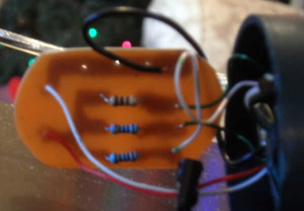 Esto fue demasiado. Usted podría haber usado perf board, o incluso soldar las resistencias directamente a los cables y entonces utiliza una tuerca para cables para conectar la energía al cable USB.