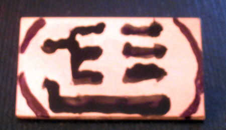 Usé esmalte de uñas para esbozar el patrón en un tablero. Luego fue grabada y perforada.