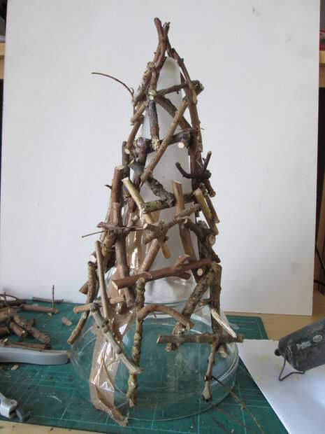 Mantener en Añadir ramas hacia abajo hasta que golpeas la mesa por todos lados. Añadiendo comprobar si su trabajo no se atascan en el cristal o tazones de cerámica. Quitar los hilos de rosca debe dejarse por el pegamento de fusión.