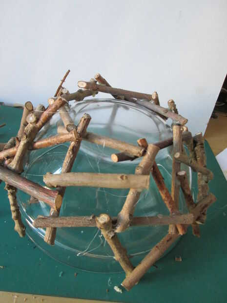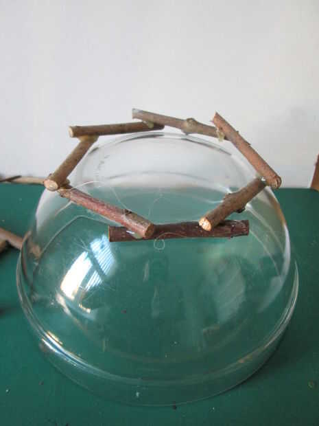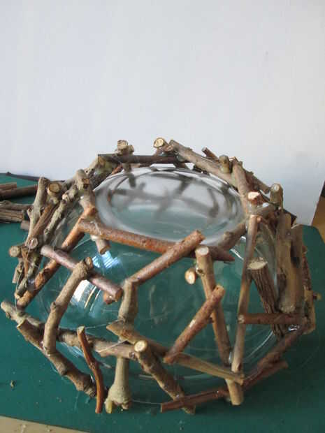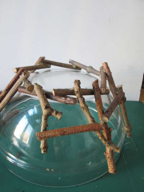 Hacer un círculo de 7-8 piezas de montaje de la base del tazón de fuente. Coloque en el tazón de fuente y agregar más palos va hacia abajo.