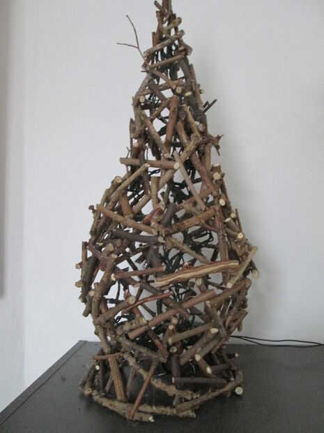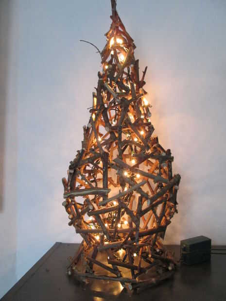 Tirar de una cadena de luces de Navidad hacia adentro a través de la base y conectar en algunos lugares con alguna cadena en el interior. Lugar entre otras decoraciones de Navidad "natural"