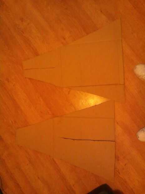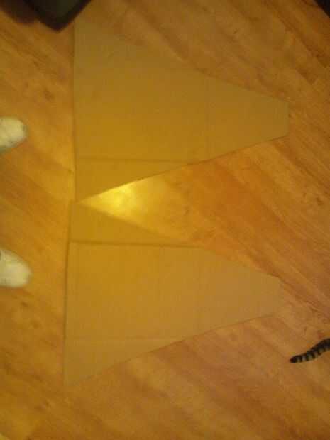 luego cortar ambas piezas en dos formas triangulares grandes idénticas.