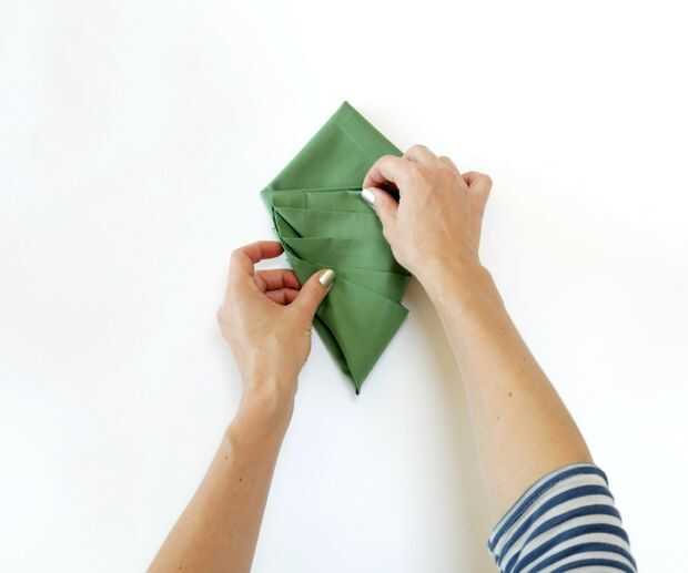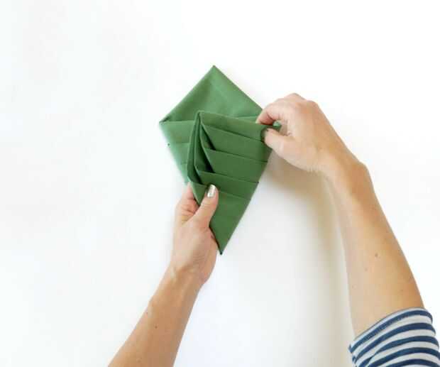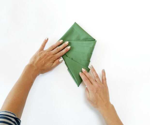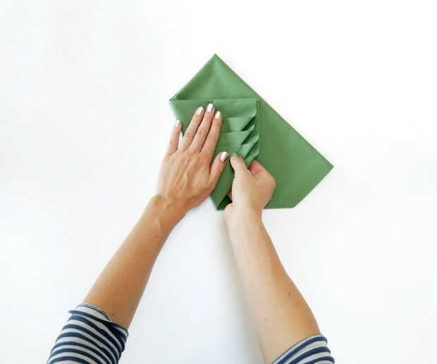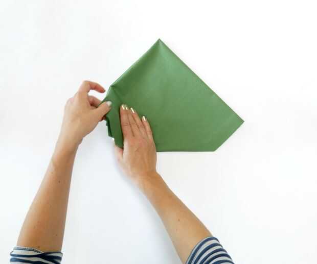 Uno a la vez, doblar cada superior exterior esquina al borde del lado opuesto, para que las tapas son paralelas con usted y ha formado un ordenado hacia abajo señalando la forma triangle-ish.
