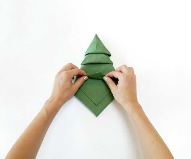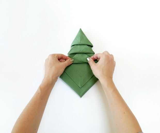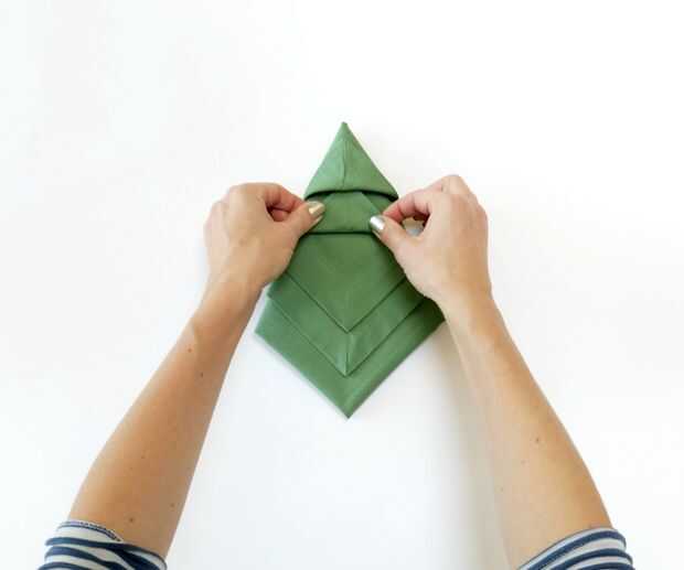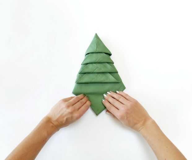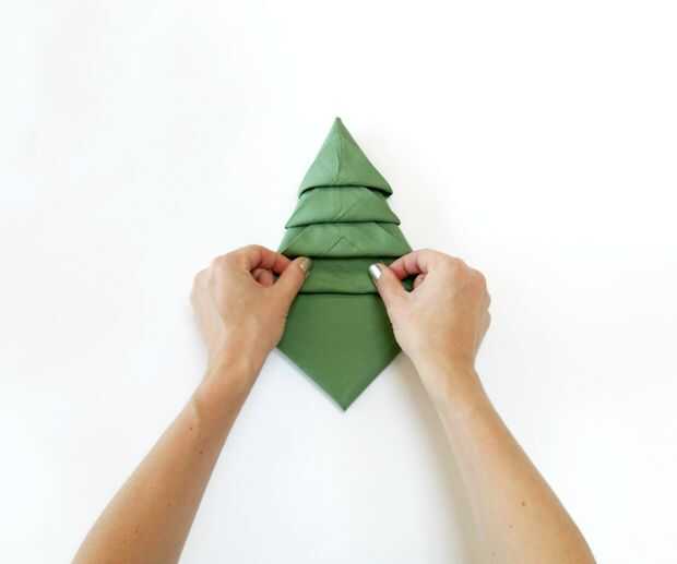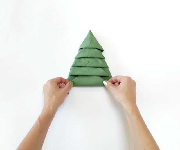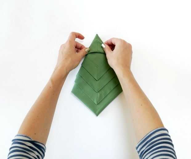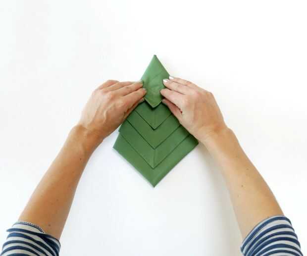 Aprende a doblar una servilleta en un árbol de Navidad de una servilleta de papel. También puede utilizar servilletas de tela almidonada. Instrucción muy simple (paso a paso). Pliegues de la servilleta creativa.