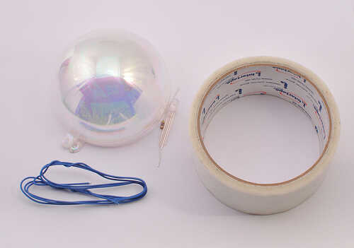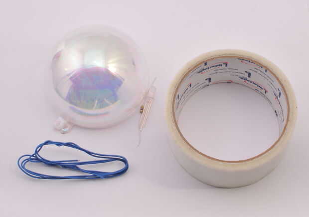 Estoy usando un adorno de plástico transparente que consegui a Michaels por $2 o $3. Puede utilizar un adorno de cristal, pero cuando el LED se ilumina cualquier virutas o raspaduras en el interior capa del ornamento mostrará a través de y no se verá tan bonito. La cinta difundirá a hacerla parecer más aún cuando se enciende el LED.
