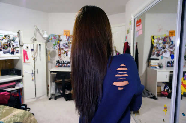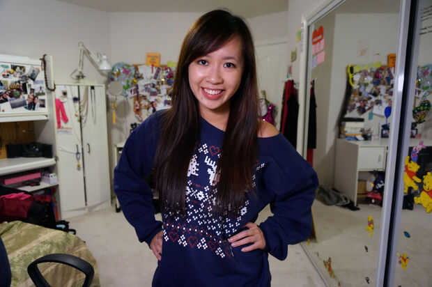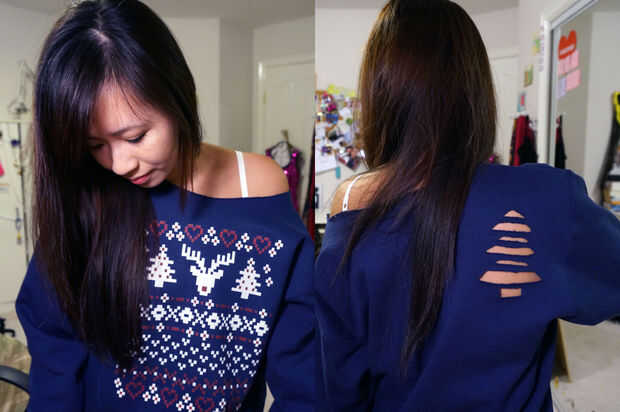 A pesar de mi suéter de Navidad ya está personalizado con mi propio diseño, quiero personalizarlo cortando para arriba y agregar un árbol de Navidad recorta en la parte posterior del omóplato!