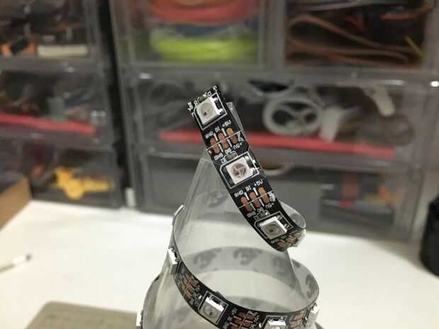 Use fix cinta adhesiva transparente la NeoPixel en la parte superior del maíz y rollo circular. Tratar de hacer la banda de ajuste a la forma de maíz.