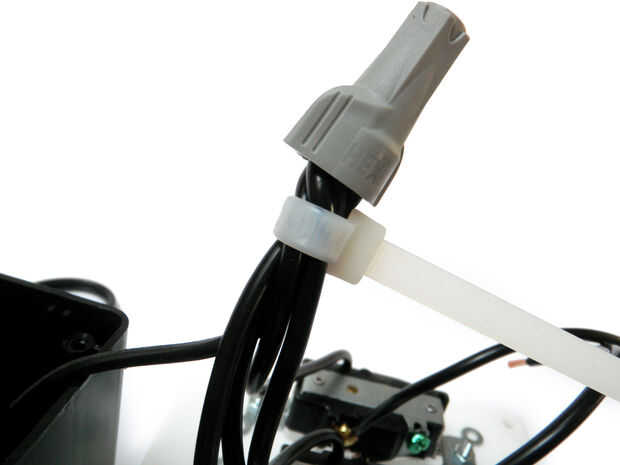 Para una pequeña protección extra, zip atado el paquete de cable directamente debajo de la tuerca para alambre.