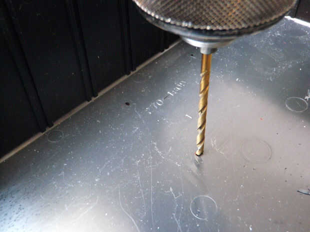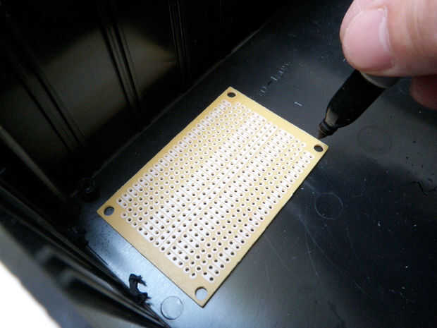 Cuando todos los agujeros marcados en la parte inferior de la caja, Taladro broca para taladro de las marcas de la placa de circuito con un 9/64" y broca de las marcas de Arduino usando una 1/8".