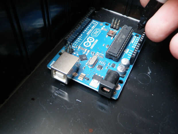A continuación, coloque el Arduino en una posición en la que poder enchufar y desenchufar el cable USB (una vez que se fija en esta posición). Repita el proceso.