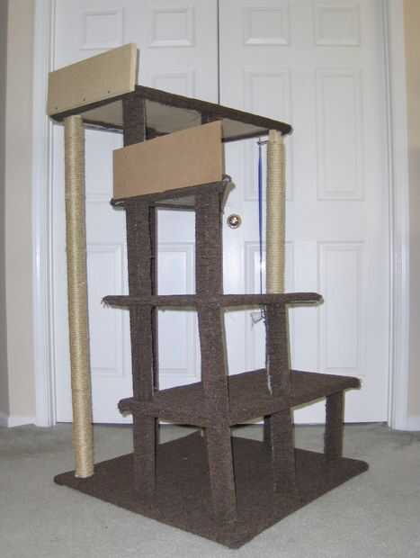 recientemente tomamos en un gatito callejero y guardar nuestros muebles decidimos que necesitaba su propio suban a la.  Después de buscar en línea y en tiendas, decidimos que podríamos hacer uno un poco menos dinero.  Como fan de Instructables, busqué en el sitio, pero no encuentro nada como lo que estábamos buscando.  Una búsqueda encontró algunos sitios de venta de planes, pero inversa había diseñado algunas fotos y había diseñado un plan de nuestro propios para un suelo de moqueta, árbol del gato de cuatro niveles (cinco si se cuenta el nivel de base).  Fuimos a la tienda de hardware (tenemos un Home Depot derecha por la calle) y compró madera, alfombra, cuerda de sisal, un gancho para colgar un juguete en una cadena y unos botes de spray de pegamento.  Hemos podido encontrar tornillos de pasador, un viaje a otro hardware de la tienda, Menard, nos pescó algunos más (y más barata) la cuerda y algunos tornillos de pasador que une las secciones del poste.  Ya teníamos los tornillos para madera para sujetar los postes a la base y la parte superior, pero los pueden comprar así.  El total fue de poco más de $100.
