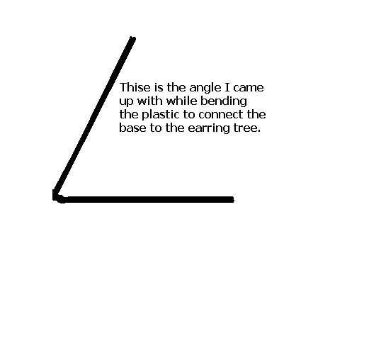 No tengo fotos de la base, pero hice unos diagramas para mostrar cómo lo hice. Corté 3 piezas idénticas para hacer la base del soporte del pendiente.  Tuve un par enormes lavadoras que eran pesados para darle algo de peso. No quiero un árbol pendiente que caería más fácil! Sintra pasa a ser también un material termoplástico. Así pude calentar una tira en agua hirviendo y forman un ángulo. Esta pieza angular conecta la base al árbol de la pendiente.