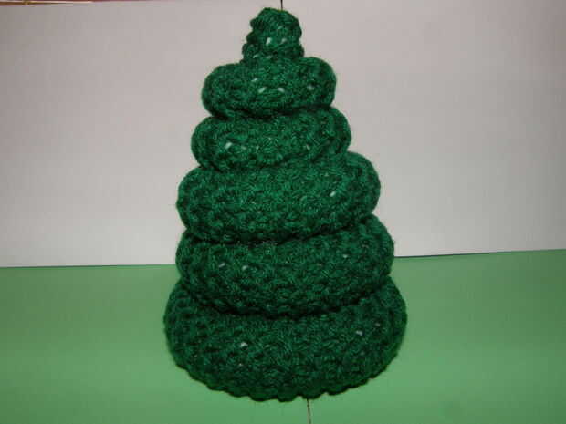 Acabado: Tejido en todos los extremos. Centro del 2 º anillo de la pieza base y coser o pegar en el lugar. Repita con los anillos de 3 º, 4 º y 5 º. Coloque la pieza superior en centro del 5to anillo y coser o pegar en lugar.